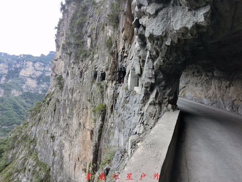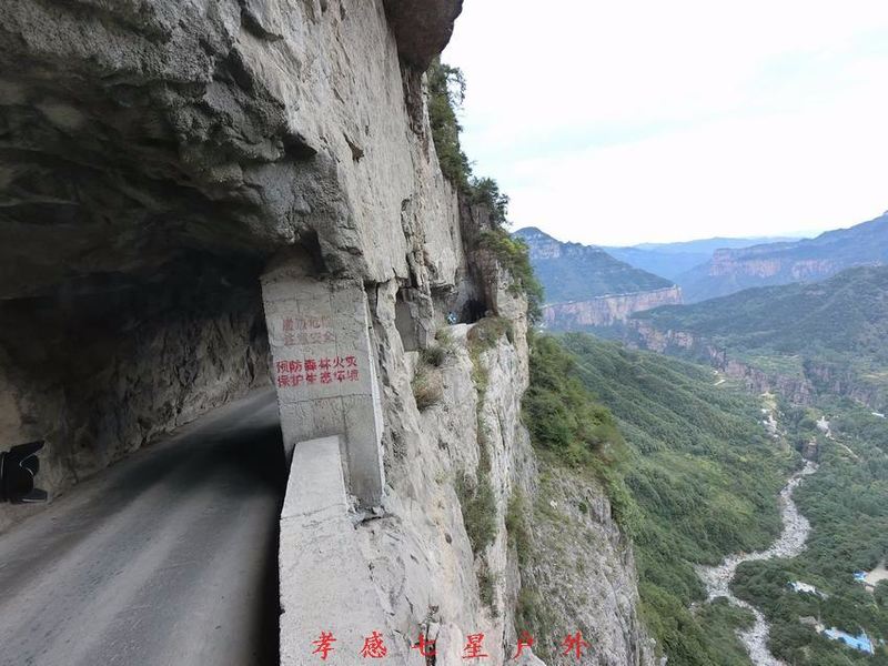 南太行七条挂壁公路中,位于王莽岭景区的昆山挂壁公路是最为年轻的。1992年,山西省实施“村村通”工程,为解决陵川县古郊乡昆山村民的出行难,决定在王莽岭北面给昆山村民开条南行出路。7个包工队同时作业,在山顶固上缆绳,将工人吊到山腰开洞,分段施工,快速打通了昆山挂壁公路。