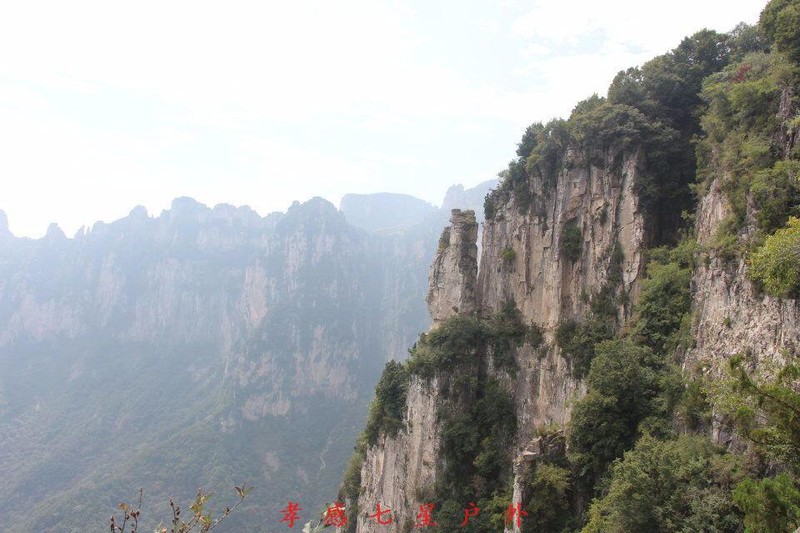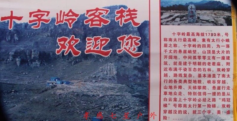 十字岭 最高海拔1780米,号称南太行最高峰,远眺四望,视野开阔,一览远山近黛,素有太行小峨眉之称。除了由众多N年“石芽”组成、古色精致、形状奇特、惟妙惟肖的石林之外,雨后风起天晴之后,更有薄薄而出的日出,又有犹如层浪迭起的云海。十字岭的四周为一落千丈的悬崖峭壁,山顶是大片的开阔地,中间孤零零的立有一座建筑,就是建于明朝的老君庙,附近布满千姿百态的石林。