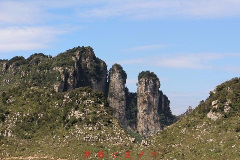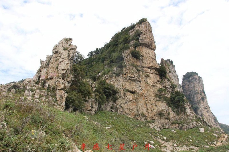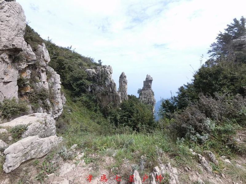 前往十字岭主峰,通往十字岭的路,系碎石山道,地势平缓,攀升不大。路上有多处奇形怪状的尖峰挺立,比较惹眼。