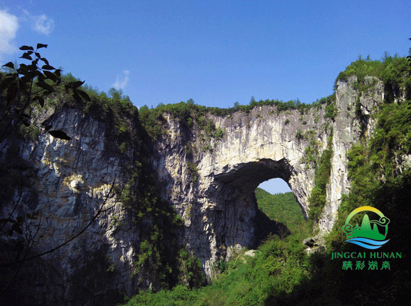 一座高数百米的喀斯特自生桥,是天使之城的城门,当地驴友也称其为灶门。因天使之城造型酷似土家锅灶,又名锅灶,自生桥即灶门。
