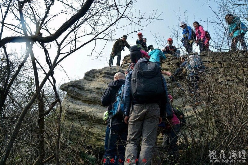 黄陂棺材山位于黄陂大余湾以东棺材山村,木兰山对面的山头就是棺材山了,因山头形似棺材而得名;附近一村庄就叫棺材村,当地传说:“登棺材山可以升官发财”。 2.18日孝感七星户外俱乐部新老驴友178人分乘四辆大巴车到黄陂湛家湾后徒步登上升官发财山,穿越了多个古寨子经鹰沟石下切到梳子店后乘车返孝。