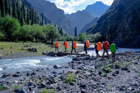 翻越离营地只有200米的桥楞格尔达坂(2500米),一路轻松到终点农大林场,需过河4-5次。农大林场的山谷俊奇险要,是南山中独树一帜风光。到达农大林场后乘车返回到乌鲁木齐市(全程结束)。