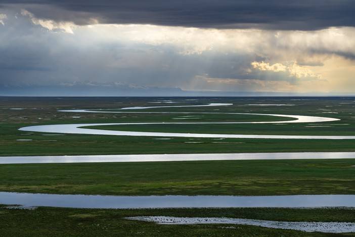 20:00 我们来到【九曲十八弯】,黄昏时分的九曲十八弯,有着世界上最美丽的日落。九曲十八弯指开都河的连续大转弯区域,在每年夏季的傍晚,当你站在天鹅湖畔的山顶,夕阳从云缝中把万道霞光射向草原时,就能看到蜿蜒的开都河九曲十八弯映出后羿射下的那九个太阳,非常神奇!