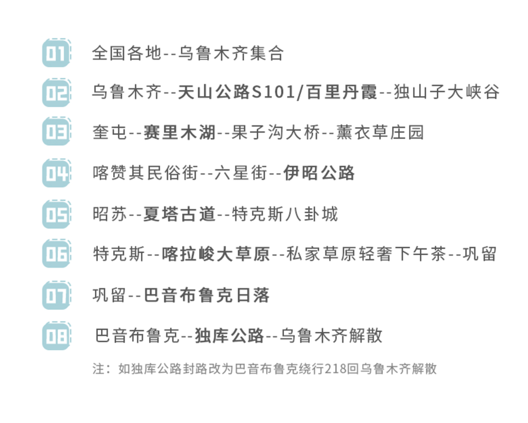 D8巴音布鲁克-独库公路(270公里,约5小时)-乌鲁木齐解散(240公里公里,约2.5小时)