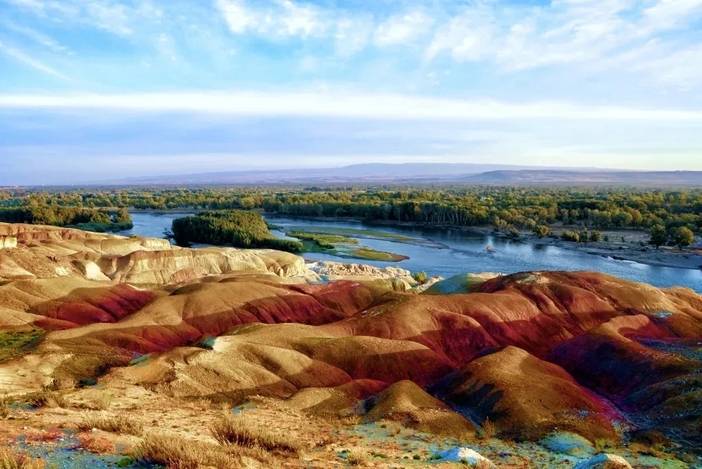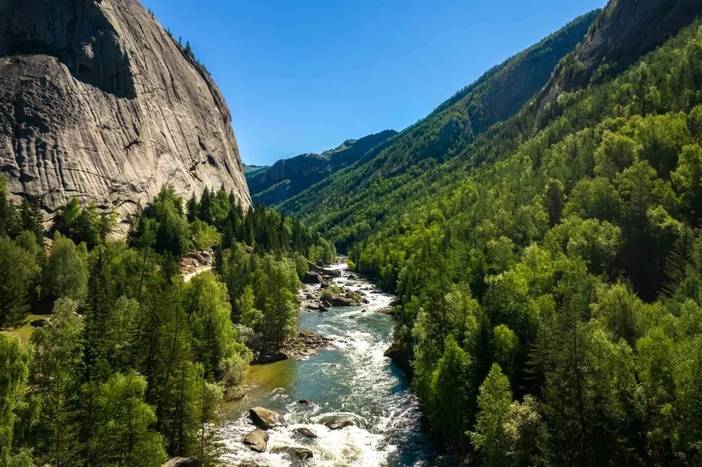 12:30 抵达【可可托海】,可可托海主要是花岗岩地貌,风雨侵蚀,流水切割,形成许多深沟峡谷。大峡谷的山都是独石成峰,一峰一风景,一峰一传说,尤其是神钟山,就像一个巨钟扣在额河旁边。孤峰傲立,巍峨壮观。
