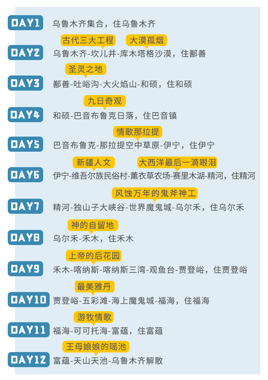 1.乌鲁木齐的飞机建议定22点之后的,也可以自行在乌鲁木齐住一晚第二天走。