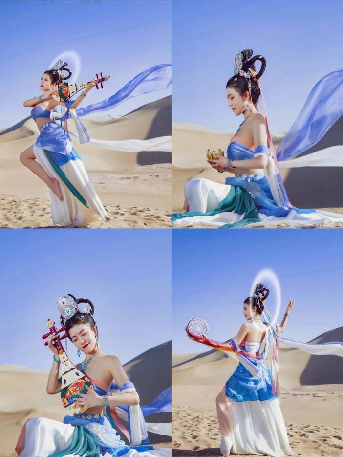 D5敦煌-莫高窟(10KM,车程约10分钟)-鸣沙山月牙泉(7KM,车程约10分钟)-敦煌(7KM,车程约10分钟)