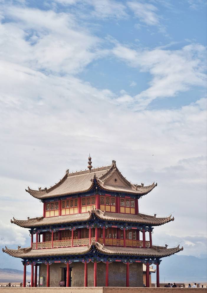 12:30抵达【嘉峪关关城】,从关外看去,巍峨雄壮的关城及瓮城伫立在夕阳之下,一派庄严。几百年前的大青石,依旧在这里默默地承载着历史的厚重。 嘉峪关外,是延绵的祁连山脉,远处的山顶可见积雪,天空的灿烂云霞将嘉峪关关城衬托地更加壮美。