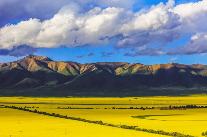 16:30前往【门源花海】(花期预计为6月末到7月末)。远方耸立着雄伟的祁连山脉,山脉的峰顶上【岗什卡雪山】(也称冷龙岭)白雪皑皑,百里油菜花海就在祁连山和达坂山之间呈现出一幅气势磅礴的天然画卷。