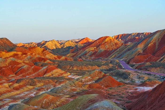 08:00早餐后乘车赴“中国最美的七大丹霞地貌”之一【七彩丹霞】。就像上帝不小心打翻了颜料盒,涂抹的山间色彩斑斓;
