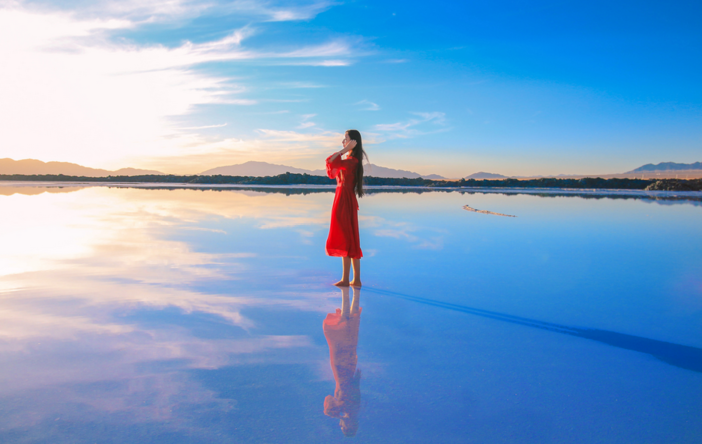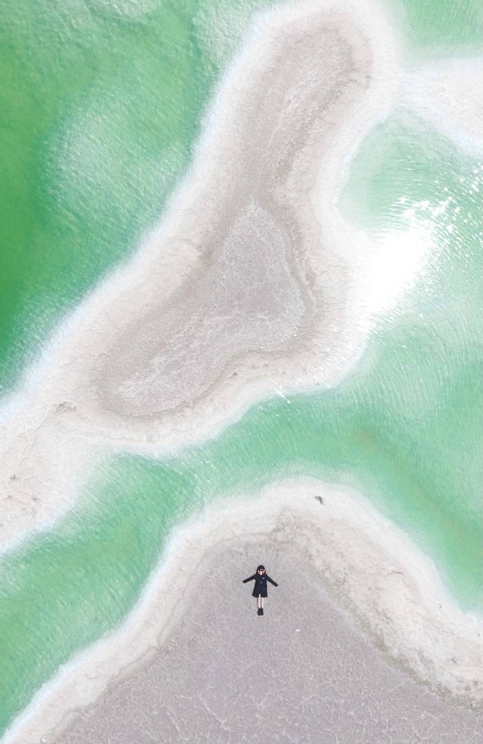 08:30抵达【翡翠湖】,我们不要放过任何一片湖泊,每一个湖泊都去打卡,穿上鲜艳的服装,提前准备好妆容,带上无人机;或躺着拍,或戏水,或找寻天空之境的场景,或捡几块盐的结晶带回家收藏,或光着脚丫子用盐湖的水杀菌消毒,能文雅点最好。