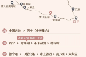 11:00乘车穿越著名的【柴达木盆地】,青藏线的必经之地。一路地广人稀,大家能深切体验到西北地区那种罕见的荒凉,这里有可以跟美国66号公路媲美的景色,也是公路片的产地哦。中午饭需要自行解决。