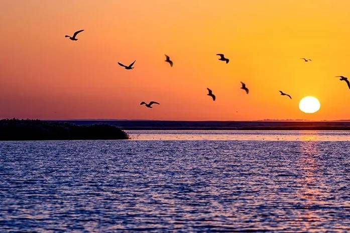 04:30今天早起,出发前往【居延海日出】,居延海曾是西北地区最大的湖泊,这里也是土尔扈特蒙古族第一个定居地。现如今虽面积不复当年,但是现在的居延海碧波荡漾,水草摇曳;当晨光洒在湖面,湖边芦苇丛都被镶上了金边,鸟儿翩飞更增添了几分诗意。我们在这里无论用什么器材,都可以拍出大片的感觉。