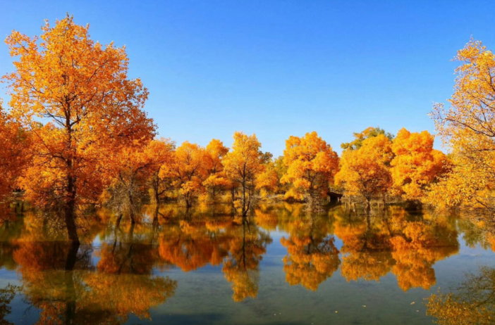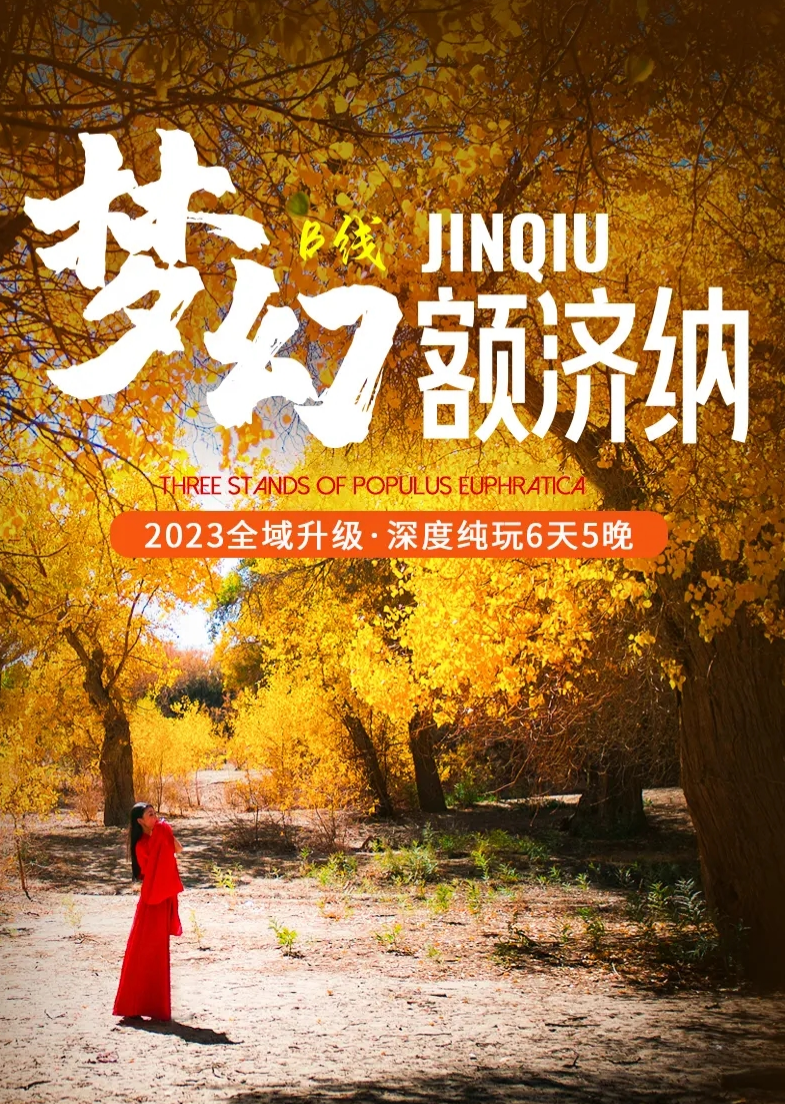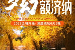 09:00出发前往【额济纳胡杨林】(全天畅玩),这里的美景因张艺谋《英雄》而名声大起。从二道桥到八道桥,这里有看不到尽头的胡杨林、红柳海,瑟瑟秋风中的胡杨林早已变成一片金黄,,金秋时节漫步辉煌的金秋胡杨林,捕捉千姿百态的胡杨美景。保护区内的一道桥至八道桥,分布着不同的胡杨景观,是摄影爱好者的天堂。八道桥的巴丹吉林沙漠北缘,沧桑醉人心魄。你也可以找寻一树三叶的神奇景象:“幼树叶如针似柳眉、壮龄树叶酷似白桦、老年树叶椭圆。”