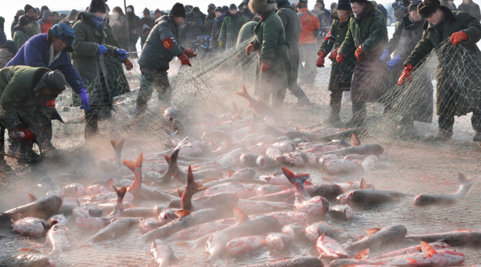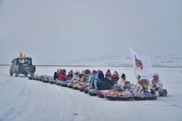 11:00观看【冰面冬捕】项目、乘坐东北特有的交通工具【网红雪圈漂移】(1月1日-2月10日结冰安全期期间安排)