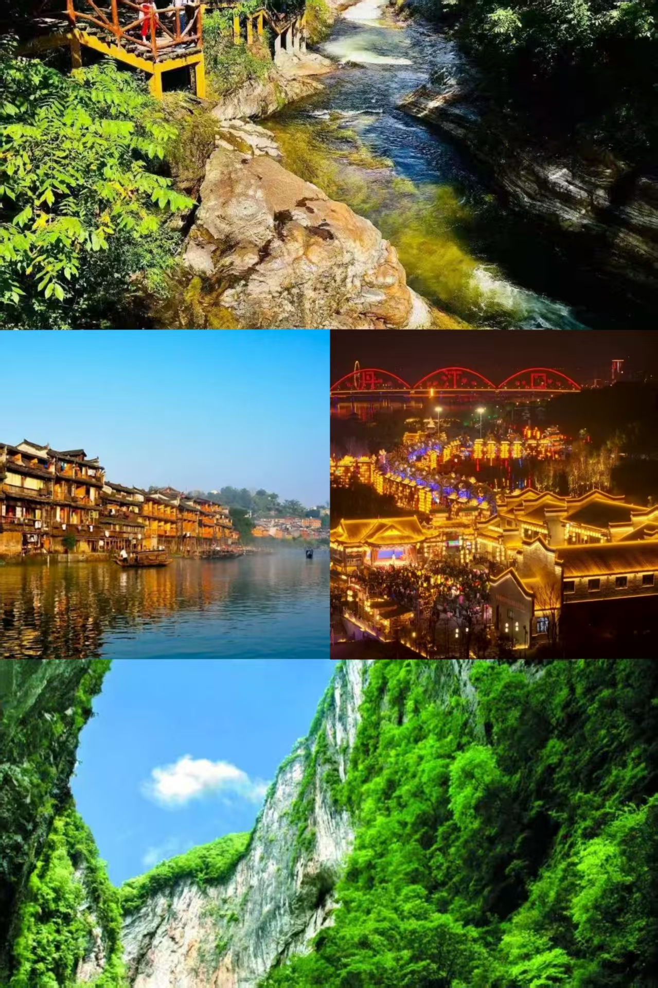 早餐后前往【武陵峡•桃花源】。陶渊明笔下《桃花源记》的原址地;桃花源里“ 土地平旷,屋舍俨然, 有良田美池桑竹之属。阡陌交通,鸡犬相闻。” 峡口十几丈长的深潭,两岸峭壁耸立,高不可测。人在下行走,抬头只见一线青天,峭壁如刀削斧砍一般,森林在上横生荫天蔽日。