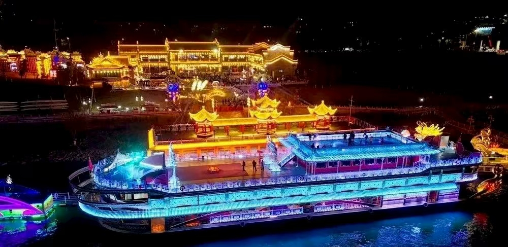 晚上可前往【桃花源不夜城 】不夜城占地面积广阔,包括水上景观区、广场光影艺术区和沉浸式商业夜游区等多个区域。这里有心向桃源、圣母祈天、至味人间等众多体验空间,为游客打造了一个全域互动、沉浸式的文旅街区。桃花源街区作为探秘“武陵峡·桃花源”的重要驿站,坐落于堵河河畔,邀请每一位心怀诗意的友人 ,共赴一场穿越时空的约会,一定让你有 一个难忘的夜晚。