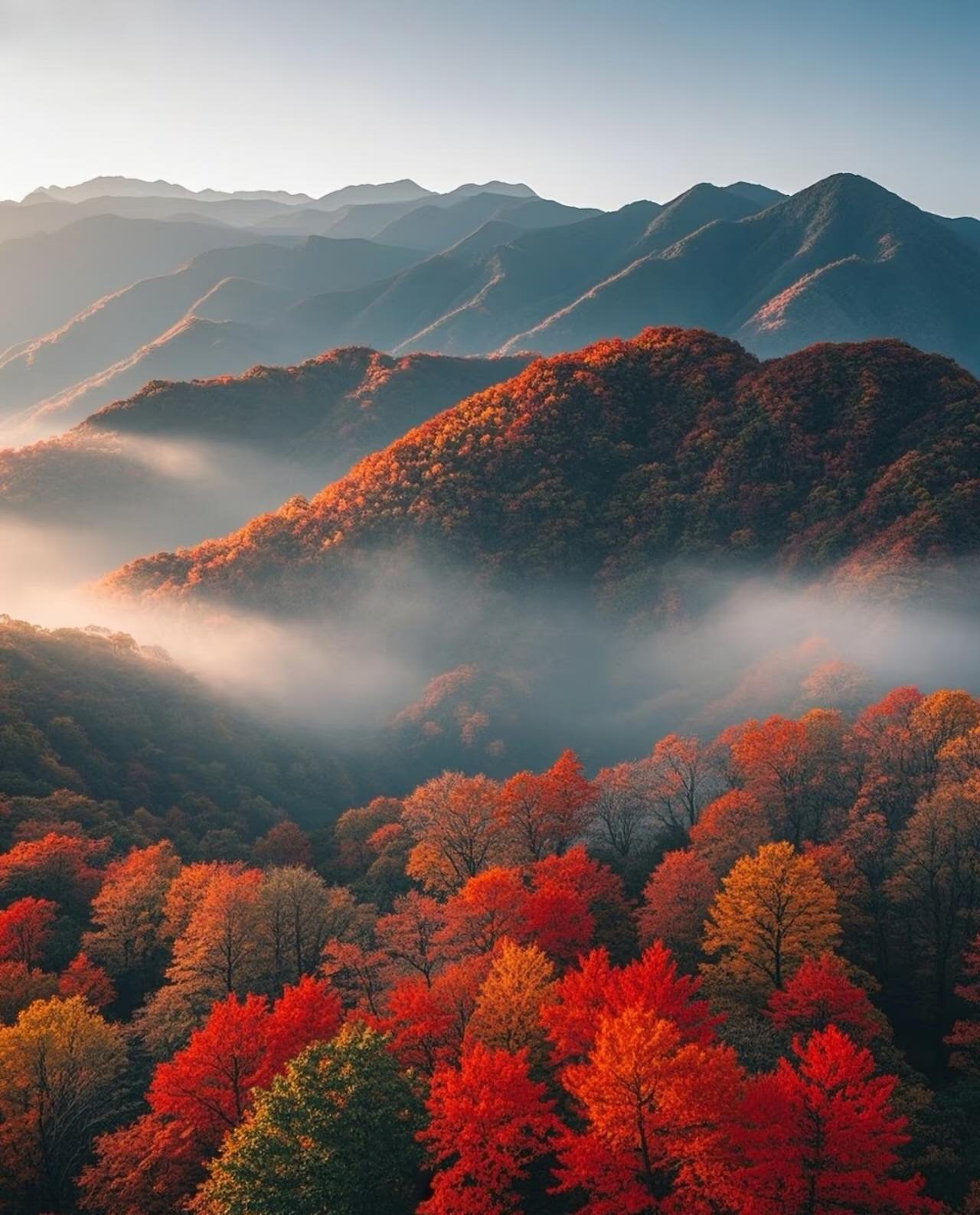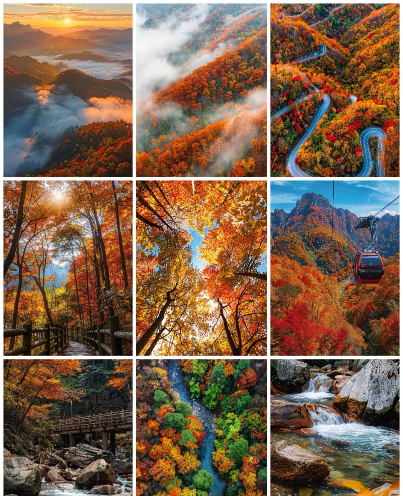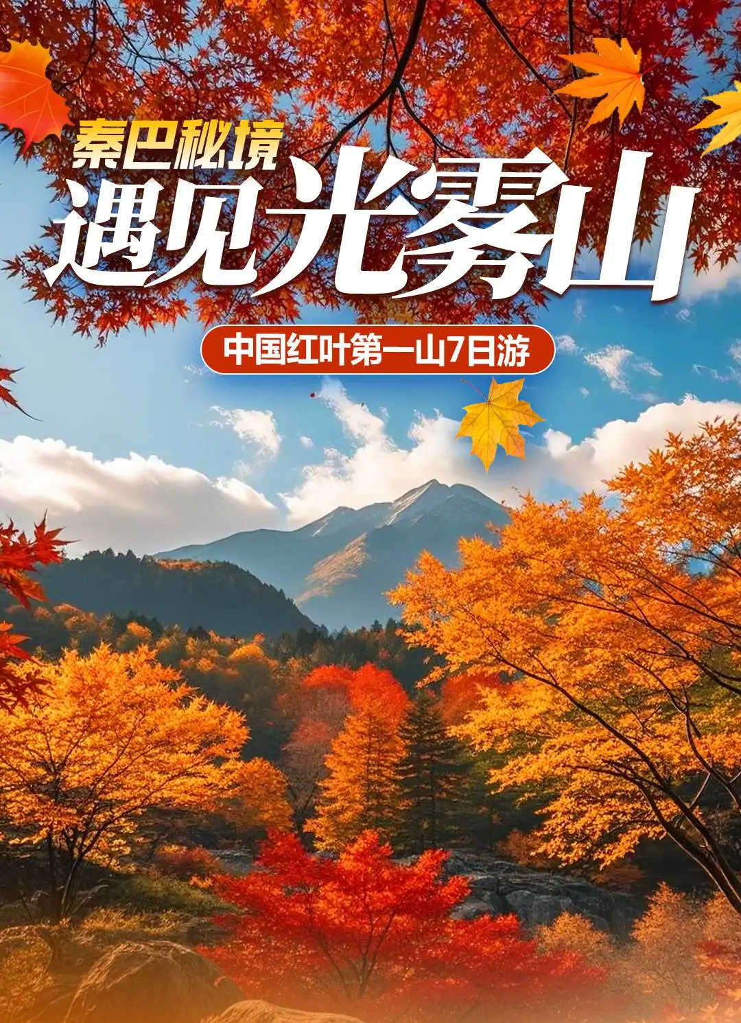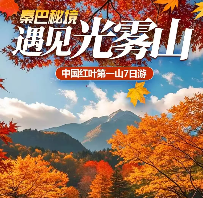中餐后前往“天下红叶第一山”光雾山景区:主峰海拔 2500 米,顶峰三尖二缺,远远望去犹如一尊睡佛,因常年云雾缭绕而得名。光雾山每一个季节都在展示着自己不同的时装,但以秋色最迷人。景区每到金秋就呈现出万山红遍、层林尽染的绚丽奇观。