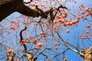 在秋高气爽十月,山有高低向背,色染肥瘦浓淡,从罗田三里畈富居寨的山顶望去,可见一片片橙红泼洒在寨下的丛山幽壑之间。这是中国甜柿的原产地——錾字石古柿树村,柿子正红,柿乡宛如一幅写意的中国画。