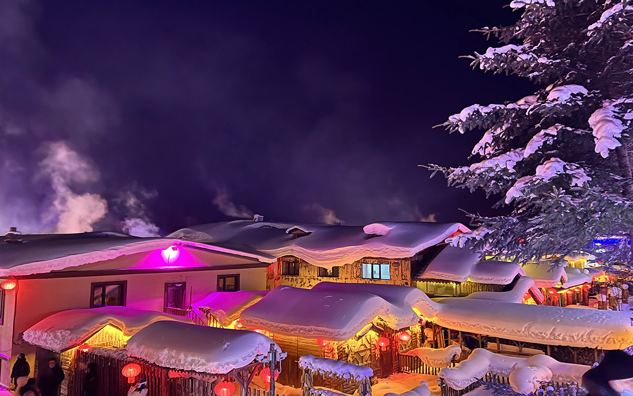 16:00 随后雪乡内自由玩耍,可以走走雪韵大街,欣赏雪房子,寻找雪蘑菇,还可穿上乡村特色的花棉袄COSPLAY。东北冬季日落时间非常早,大约四点多的时候天就已经黑了,可以漫步棒槌山栈道,俯瞰【雪乡夜景】红红的灯笼映在洁白的雪地上。也可参加雪乡景区举办的雪地蹦迪晚会,(如遇景区原因或大风等天气原因不举办不退费用)。
