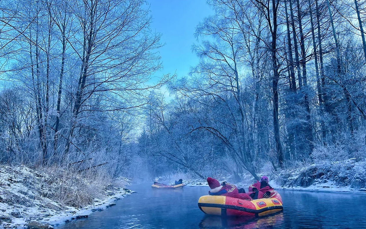 09:00抵达【雪地漂流】,冬季白雪环绕之下,冬季白雪皑皑,这长白山的支流却始终不冻,流水潺潺,在长白山的温泉河中漂流,看流水、雾凇(视天气情况),仿佛仙境一般。我们乘坐小船漂浮于水面,两岸得风景尽收眼底,真是一次奇妙的体验!
