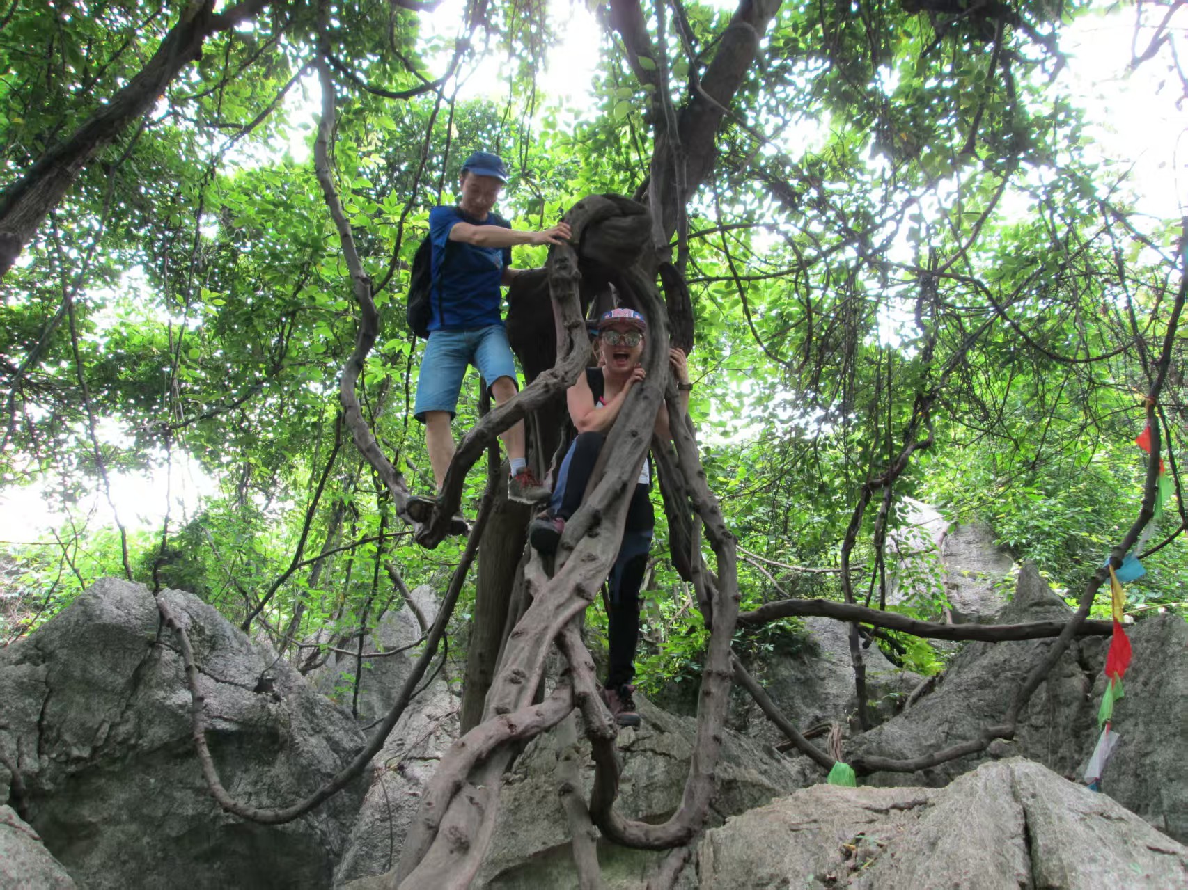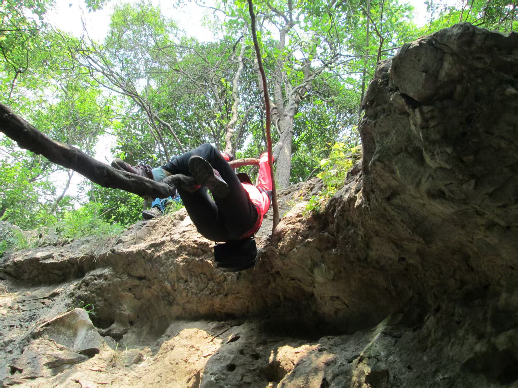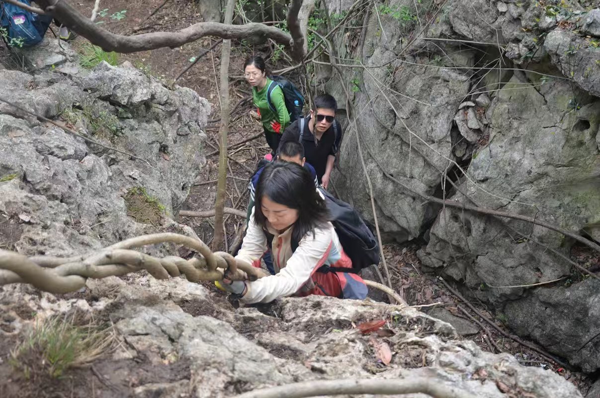 穿越全程经历登山、攀石、藤降、探洞