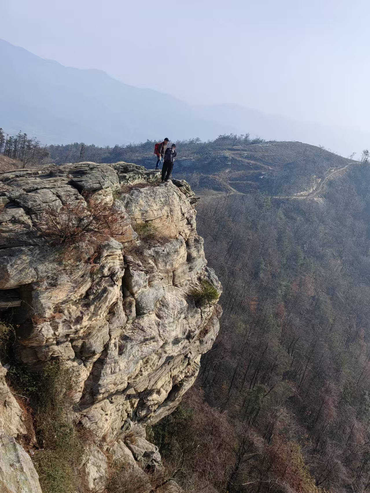 山顶的断肠崖上有一块巨大的岩石,是绝佳的拍照打卡点。站在岩石上,以蓝天、白云和群山为背景,随手一拍都是大片。在这里,你可以尽情地释放自己的情感,对着山谷大声呼喊,让所有的烦恼都随风飘散。