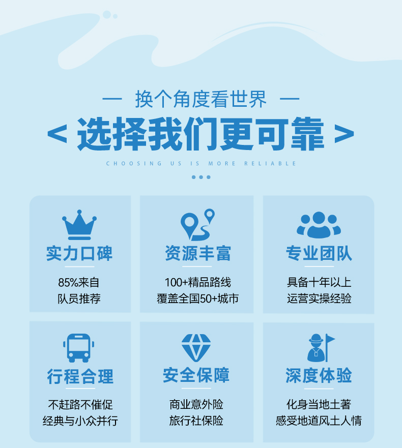 注:以上行程时间及顺序供参考,受天气、交通、景区调控及队员体能等不同影响有可能会调整,以领队实际安排为准。