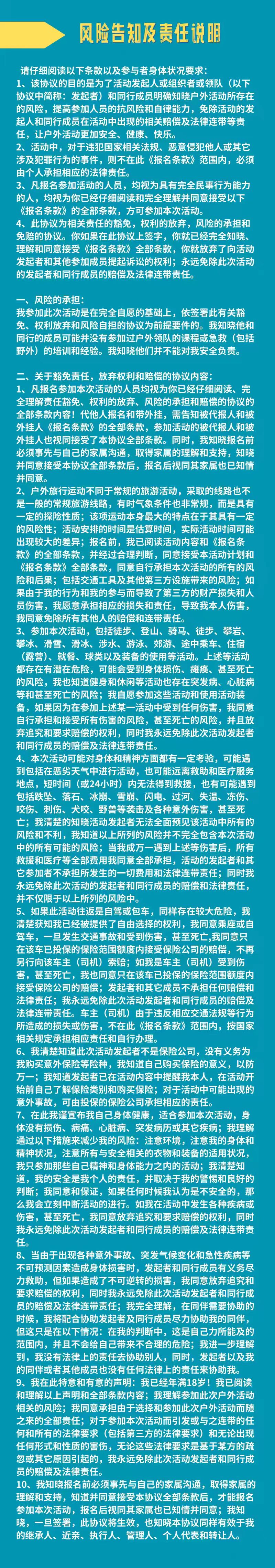 保险:公司责任险+专业户外意外险(必需提供姓名 电话 身份证号)