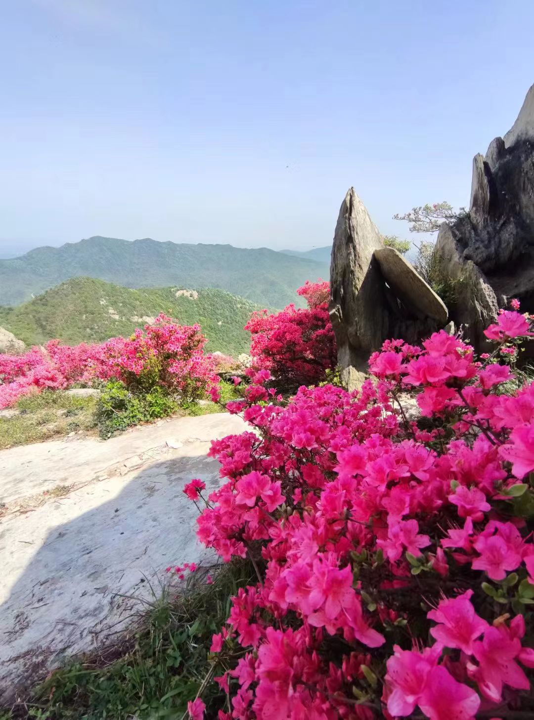 早晨准时集合出发,请提前等候勿迟到。一路欢歌笑语,9:30左右到达山下开始登山,务必穿防滑的登山鞋或徒步鞋,带1.5L饮水,途中灵活路餐。沿途注意脚下碎石,以免滑倒,沿途苍松翠柏,怪石突兀,杜鹃花开,登顶后合影,然后下山至大路集合点,16:00左右登车返程,17:30左右到达市区,活动结束。