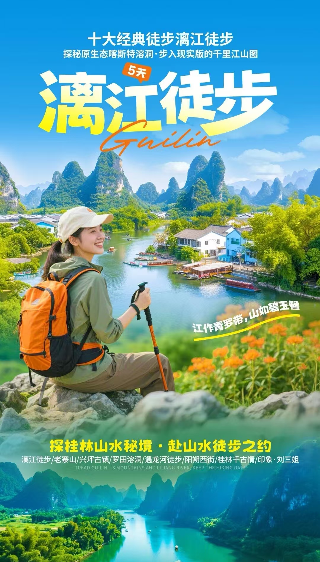 漓江徒步线是我国票选十大经典徒步路线排名第十,这也是南方唯一入选的徒步线。此徒步线沿着漓江边前行,岸边典型的喀斯特地貌,峰峦迭起,风景尚好。