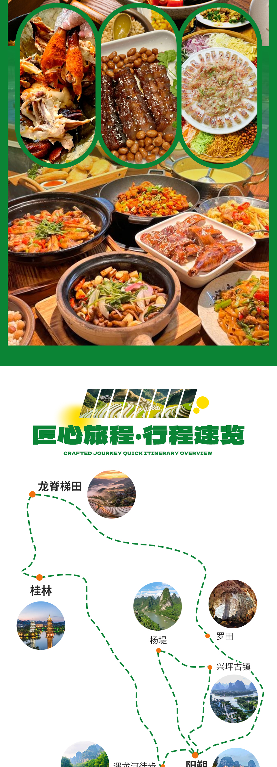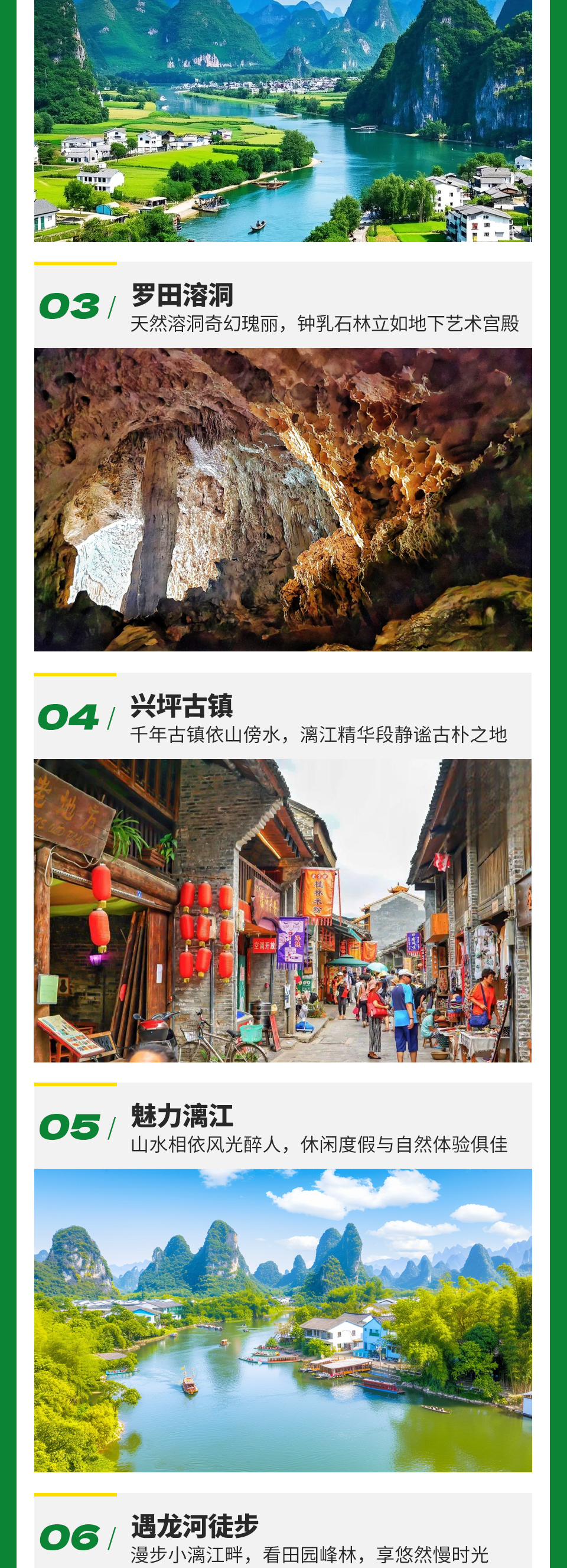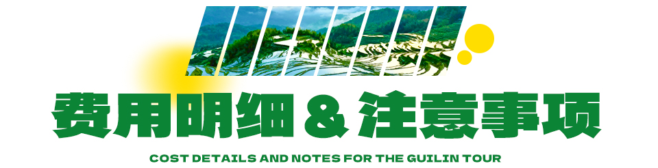 3.门票:龙脊梯田门票+接驳车、地心探洞门票、漓江徒步摆渡船费用;