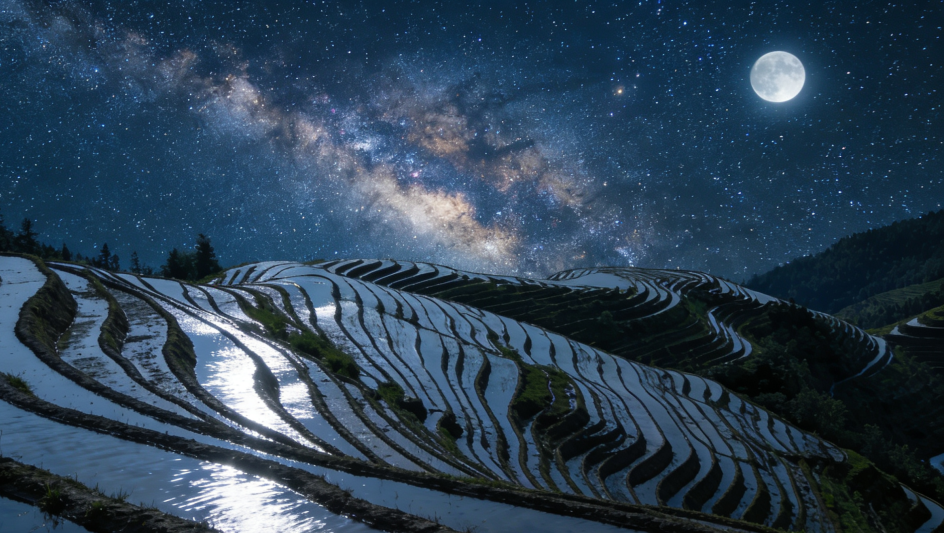 19:00 看完日落就开始吃晚餐,晚餐自理,可以约伴寻找美食,如当地特色农家腊肉、爬山鸡。晚餐过后一起玩游戏,待入夜后,可以在观景台上拍美丽的星空银河、星轨照片。