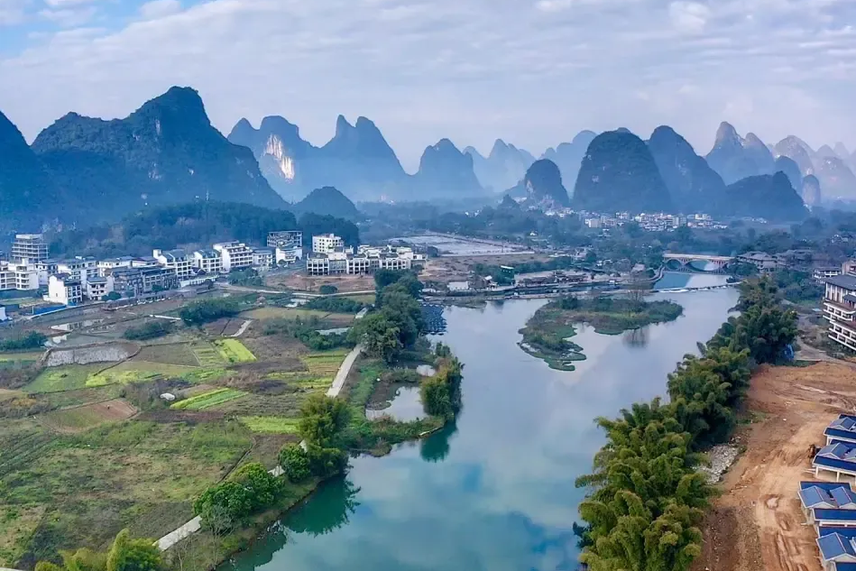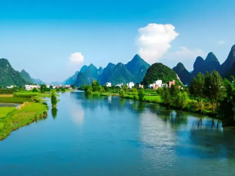 遇龙河徒步是国内较为经典的徒步路线,素有“小漓江”之称,是阳朔山水的精华。遇龙河全长43.5公里,是漓江在阳朔境内最长的一条支流。沿河的山水田园风光十分秀美,水面清澈如镜,随手拍出的照片就是一幅天然的山水画