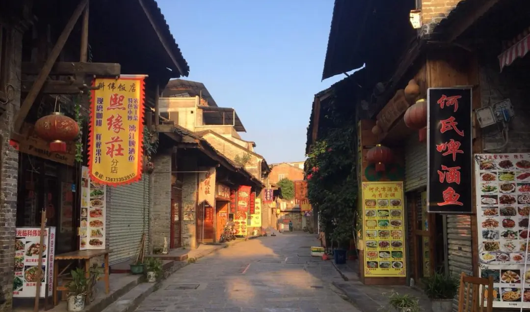 阳朔西街始建于明朝,拥有1400年历史,全长不到1公里,由石板砌成,呈弯曲的S形,留存着桂北民居特色,自开放以来,每年引数十万外国游客前往,甚至定居、开店,也就构成了西街中西文化交融的景象,被称为“洋人街”“地球村”