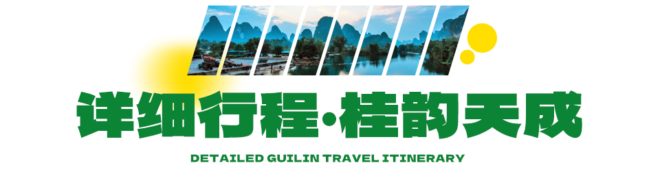 第一天为集合日,提供24小时“无缝衔接”接站服务,统一安排接站送至酒店办理入住,酒店一流的服务品质,将成为您这次旅行的绝佳下榻之所,如果您时间充足,就尽情探索桂林这座魅力之城吧。